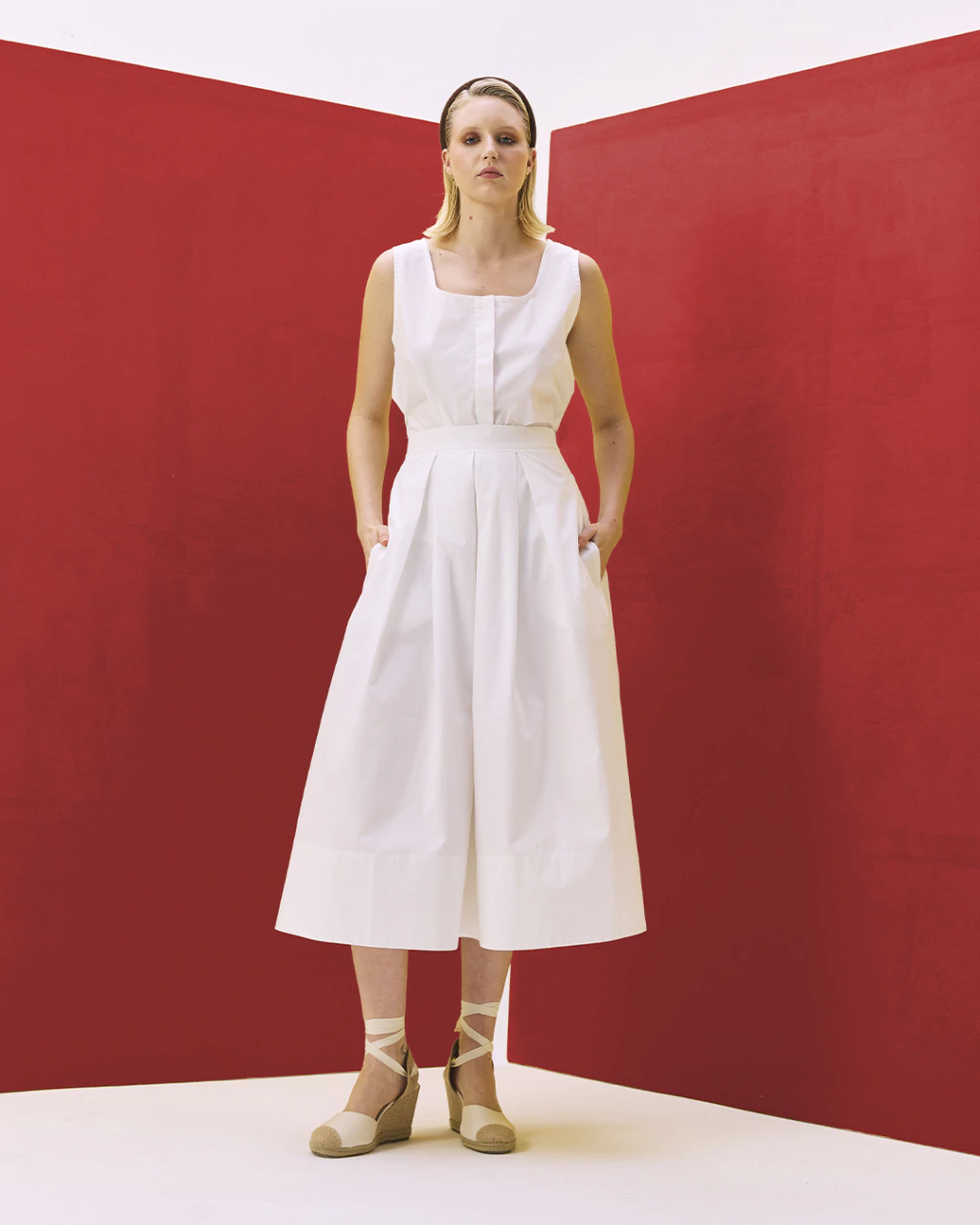 Saia godê midi com pregas, bolsos laterais e fechamento por ziper invisivel.